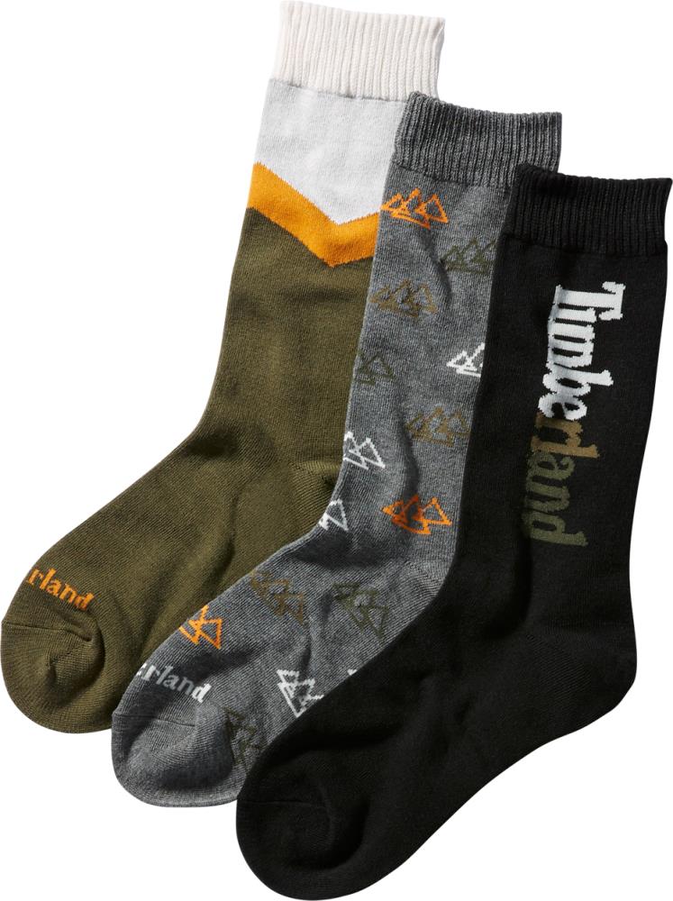 Набор из трёх пар высоких носков Timberland® в подарочной упаковке. Мягкий трикотаж с добавлением хлопка и спандекса обеспечивает комфорт и надежную посадку. Носки украшены фирменной символикой и упакованы в готовую подарочную коробку — идеальное решение для подарка.
