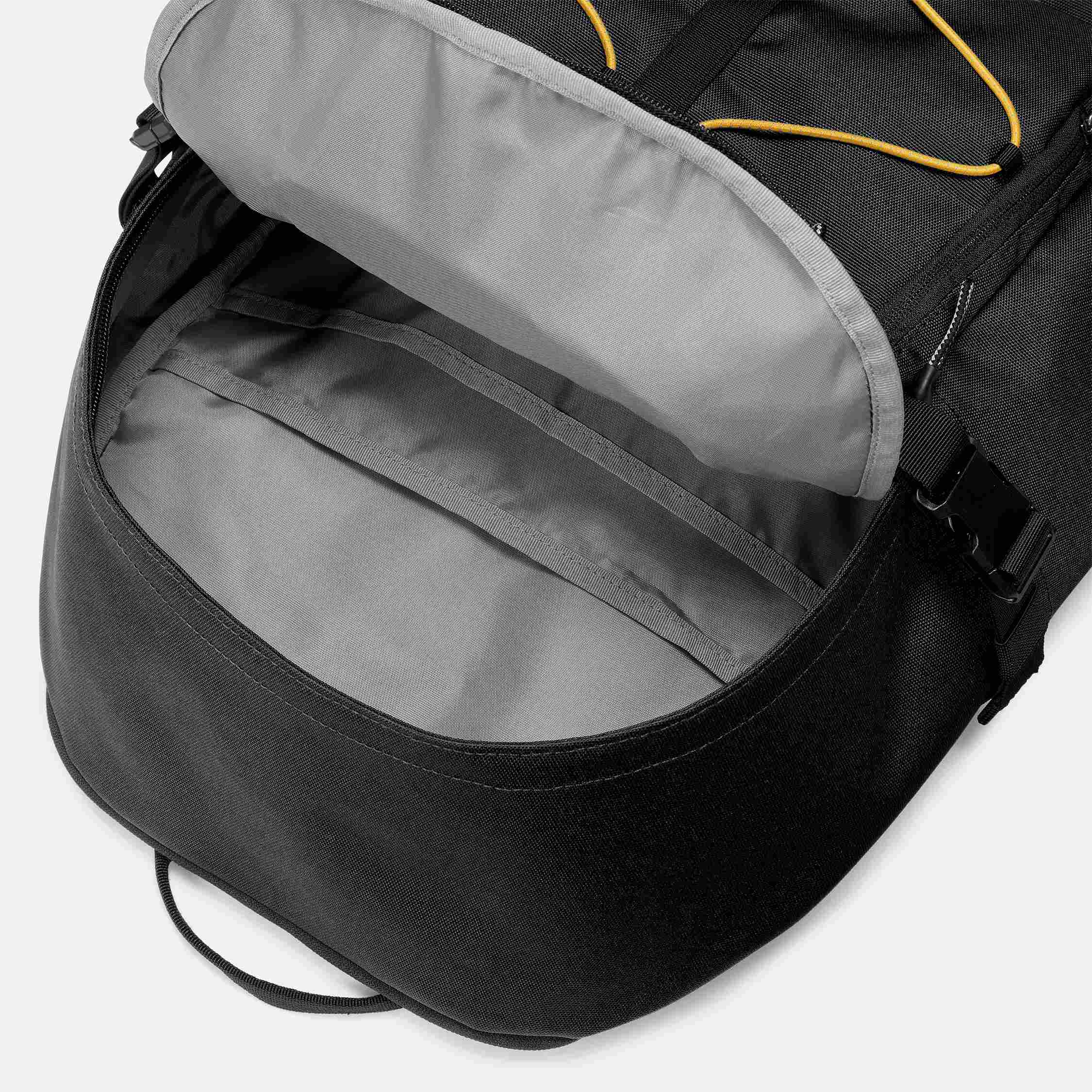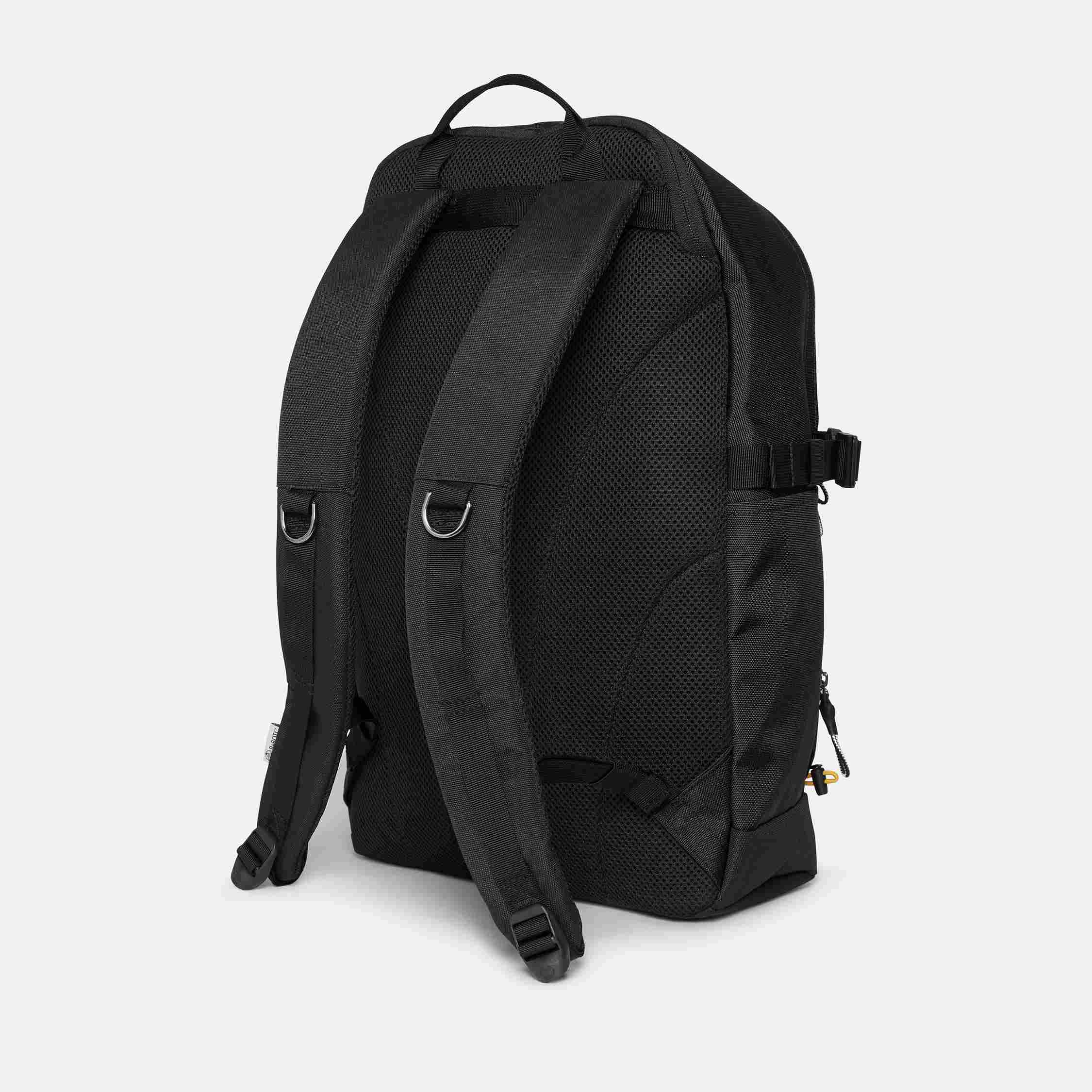 Функциональный рюкзак Timberland® объёмом 28 литров из переработанного полиэстера. Основное отделение с широким доступом на молнии дополнено несколькими передними карманами для организации хранения. Внутри — мягкий отсек для ноутбука до 15 дюймов. Уникальная система эластичных шнурков спереди позволяет закрепить дополнительные вещи. Боковые компрессионные стяжки регулируют объём, а сетчатые карманы по бокам вмещают бутылки с водой. Спинка из стёганого воздухопроницаемого материала и эргономичные лямки обеспечивают комфорт и устойчивость при носке. Размеры: 47x31x15 см.