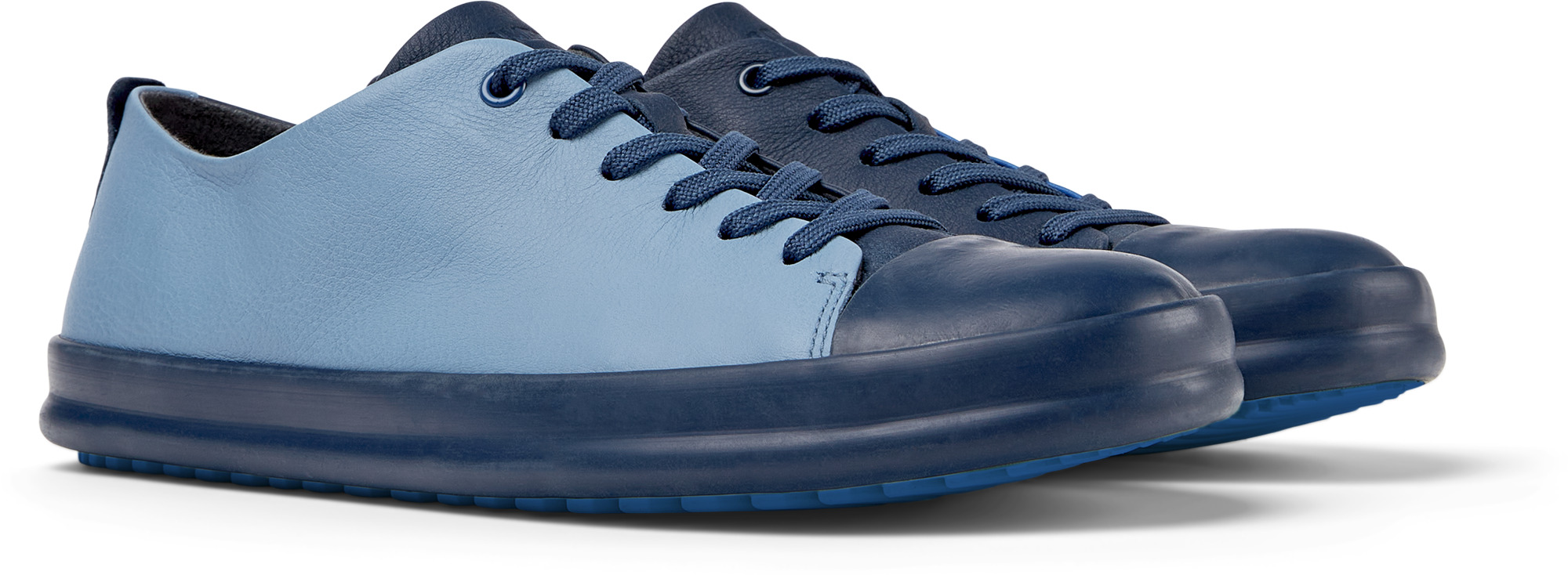 Разноцветные мужские кроссовки TWINS (Твинс). Верх из кожи синих оттенков на шнуровке. Дополнительная защита на носке. Подошва черного и синего цвета из переработанной резины. Родившаяся в 1988 году концепция TWINS бросает вызов сложившимся убеждениям, что правая и левая полупарка должны быть полностью идентичны. В группе TWINS (Твинс) встречаются фасоны других коллекций, но украшены они таким образом, что цвета или декоративные элементы отличаются в каждой паре.
