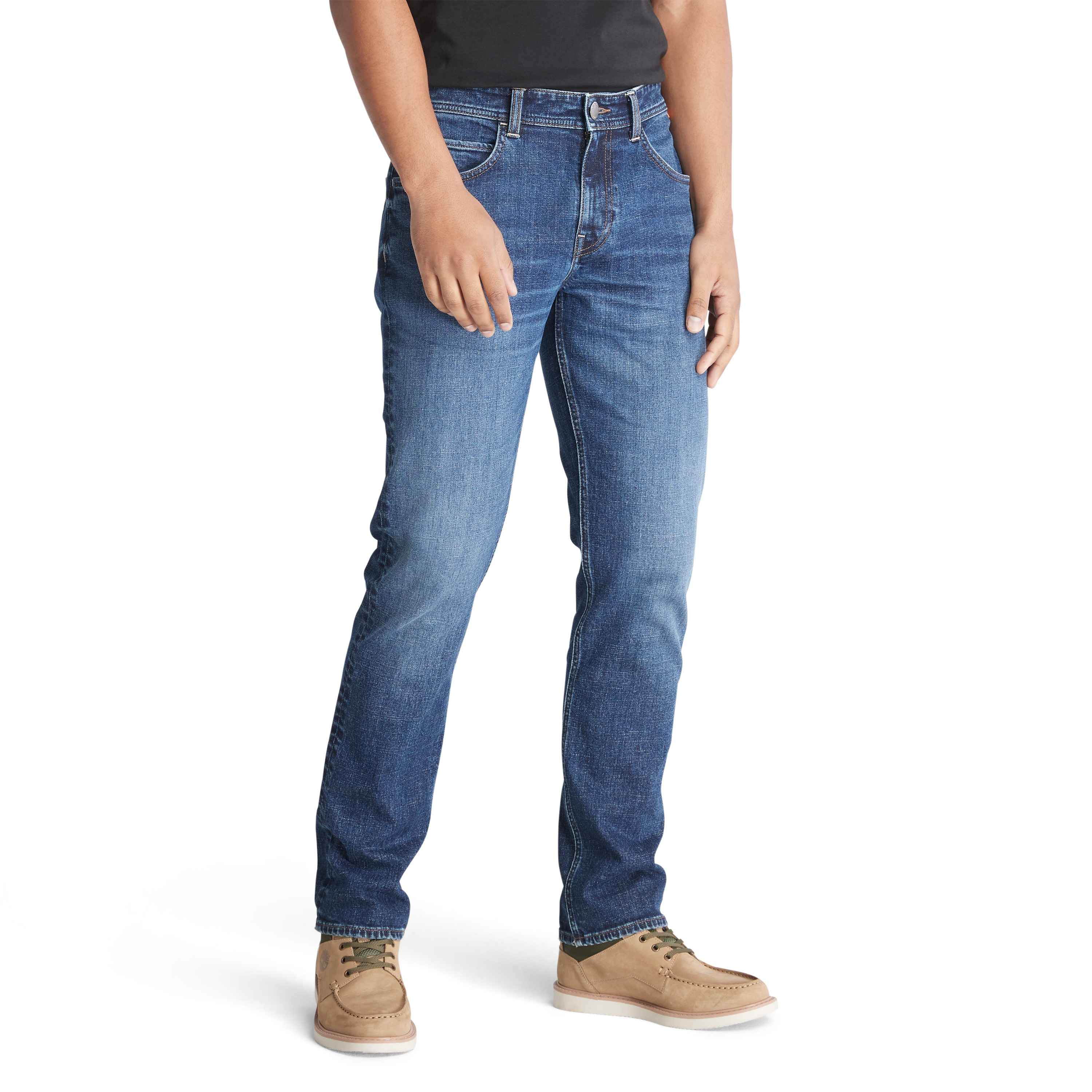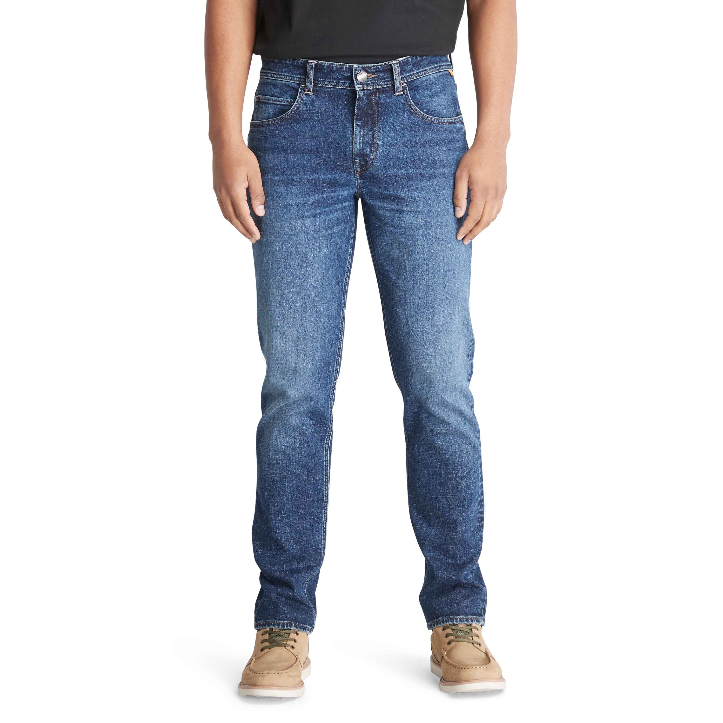 Стильные повседневные джинсы Denim Timberland® позволят вам ощущать максимальный комфорт каждый день. Они имеют традиционные для джинс пять карманов, застёжку-молнию и кожаный логотип на поясе.