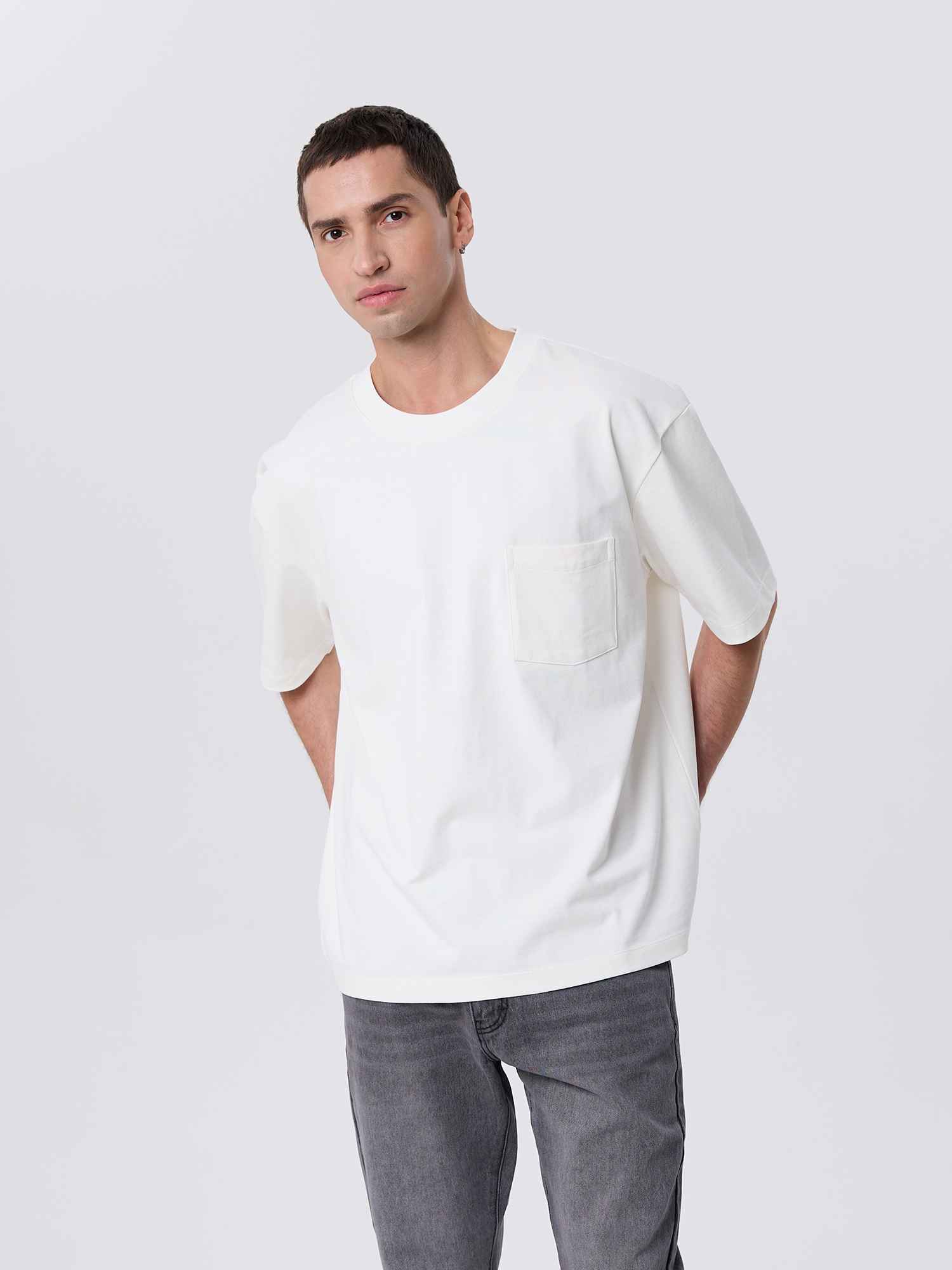 Плотная футболка свободного кроя из натурального хлопка с накладным карманом на груди. Комфортный свободный крой, практичный дизайн и качественная ткань - идеальный выбор для повседневного гардероба.