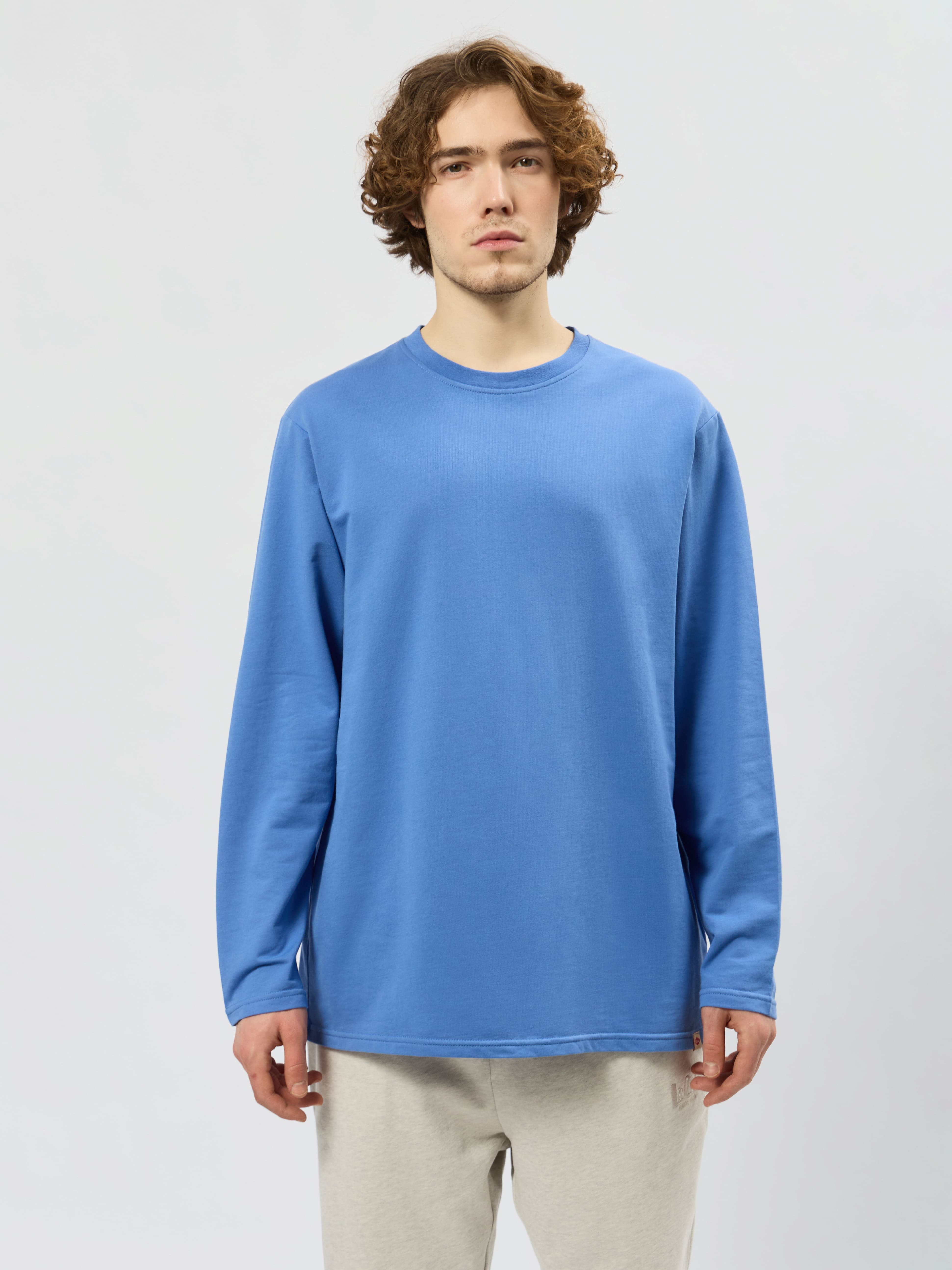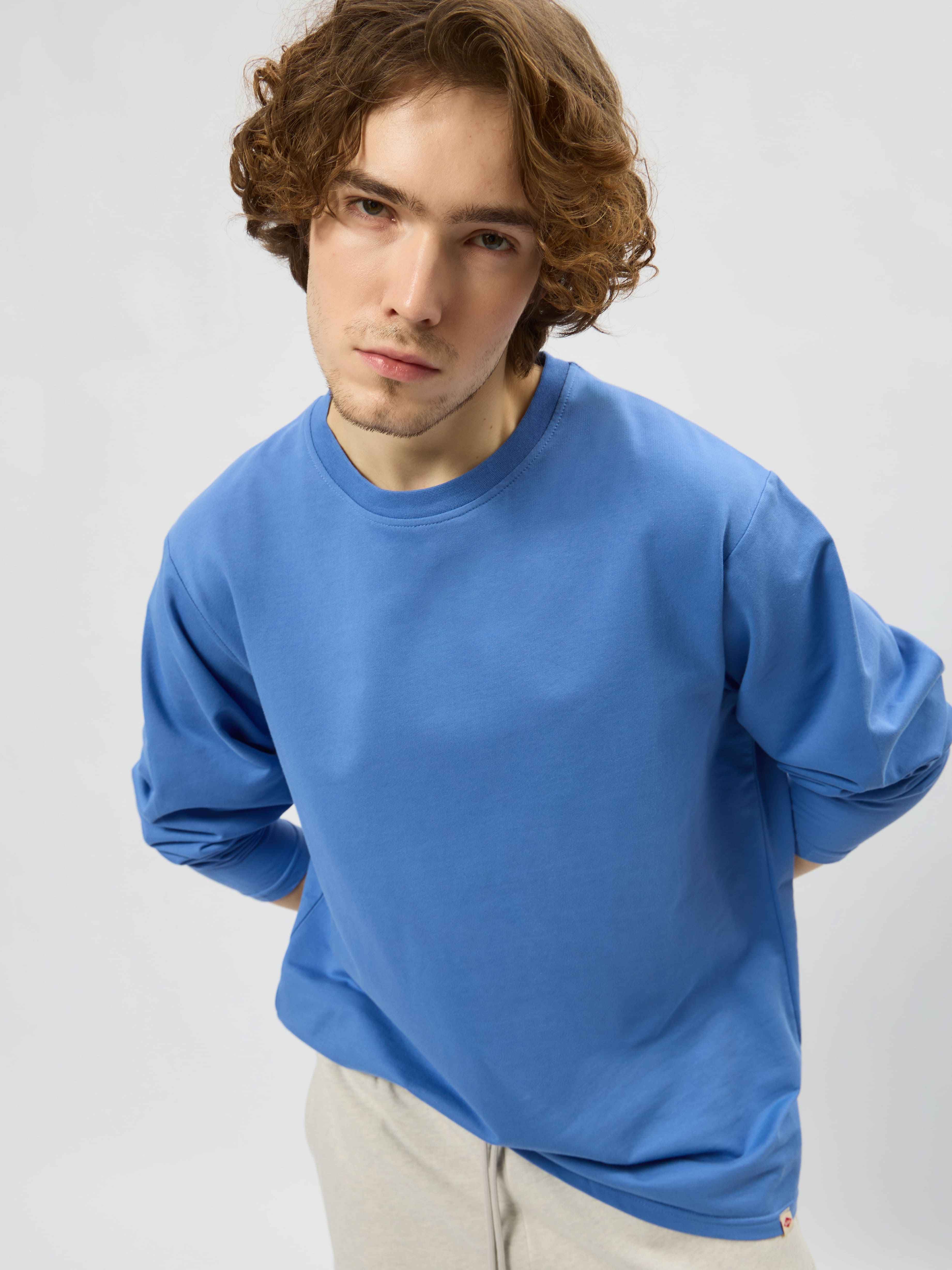Лонгслив выполнен из плотного хлопка, что обеспечивает комфорт и долговечность изделия. Материал мягкий и приятный на ощупь, хорошо пропускает воздух и позволяет коже дышать. Свободный крой и длинные рукава делают модель универсальной и подходящей для разных типов фигур. Лонгслив станет отличным дополнением к вашему гардеробу и подойдёт для повседневной носки.
