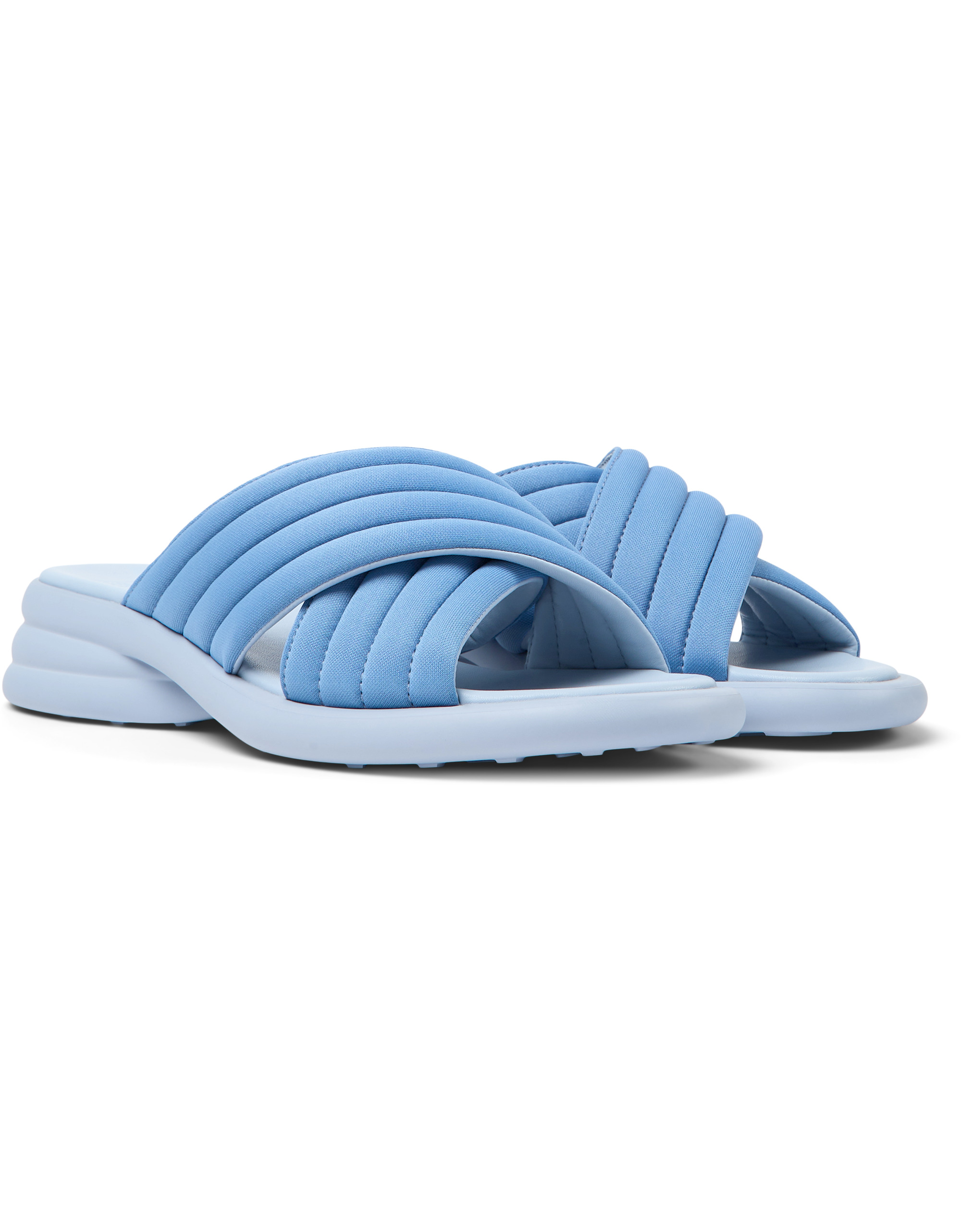 Голубые женские сандалии из текстиля с анатомической стелькой OrthoLite® Recycled™ и подошвой XL EXTRALIGHT®. Коллекция Spiro - это сочетание изящных силуэтов и комфортного каблука в невесомых моделях.