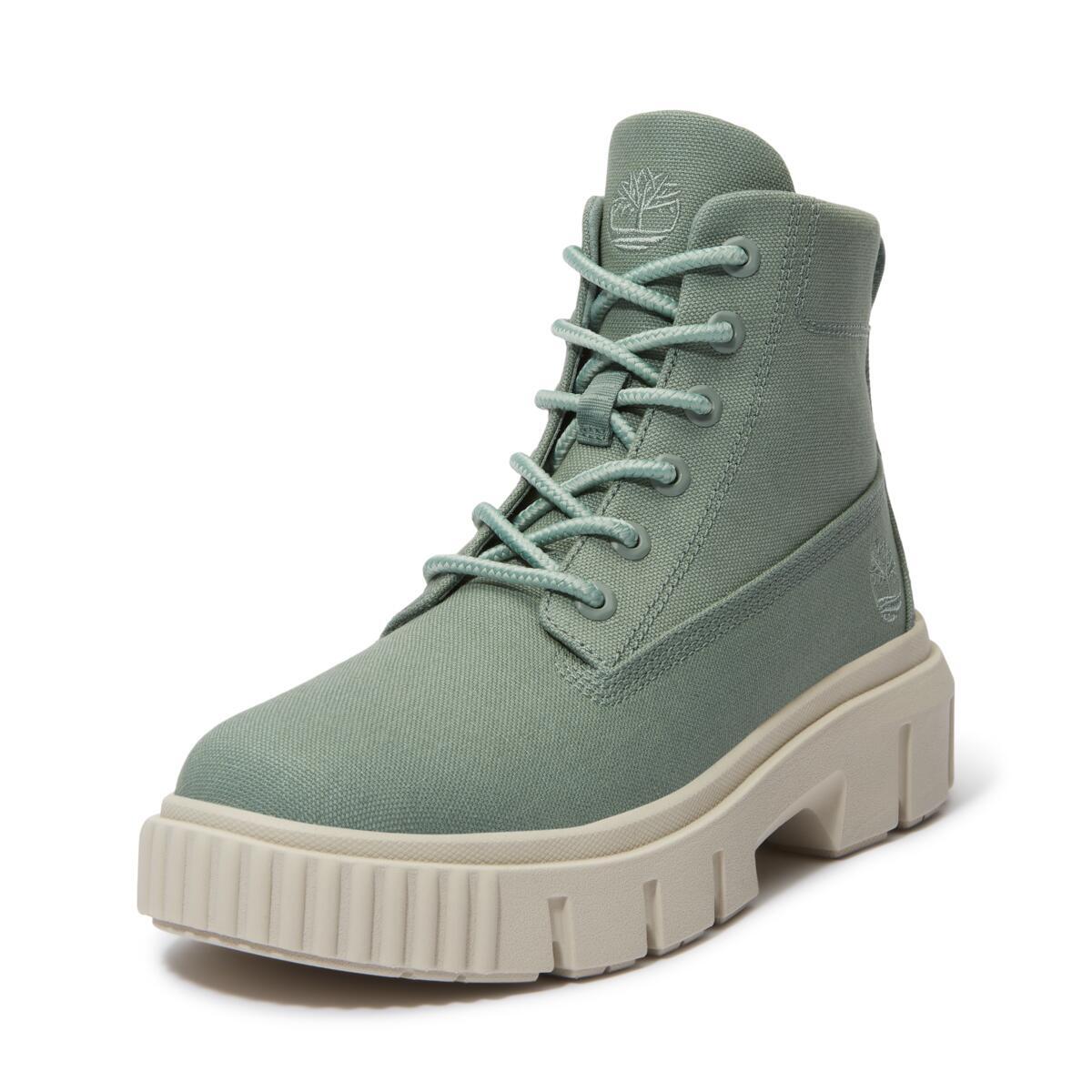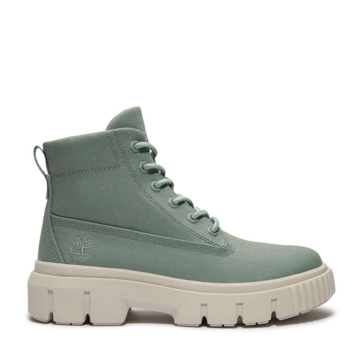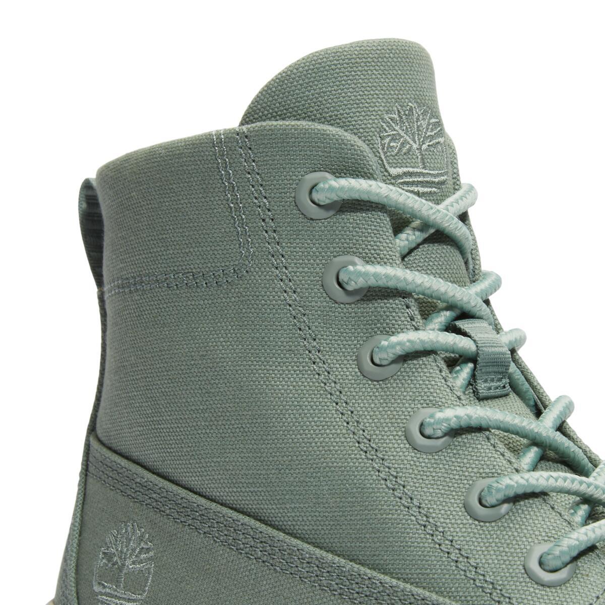 Верх этих женских ботинок выполнен из канваса, сделанного из 100% переработанного пластика. Дизайн вдохновлен рабочей обувью и находится на грани утилитарности.