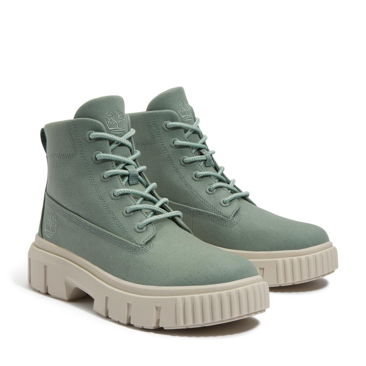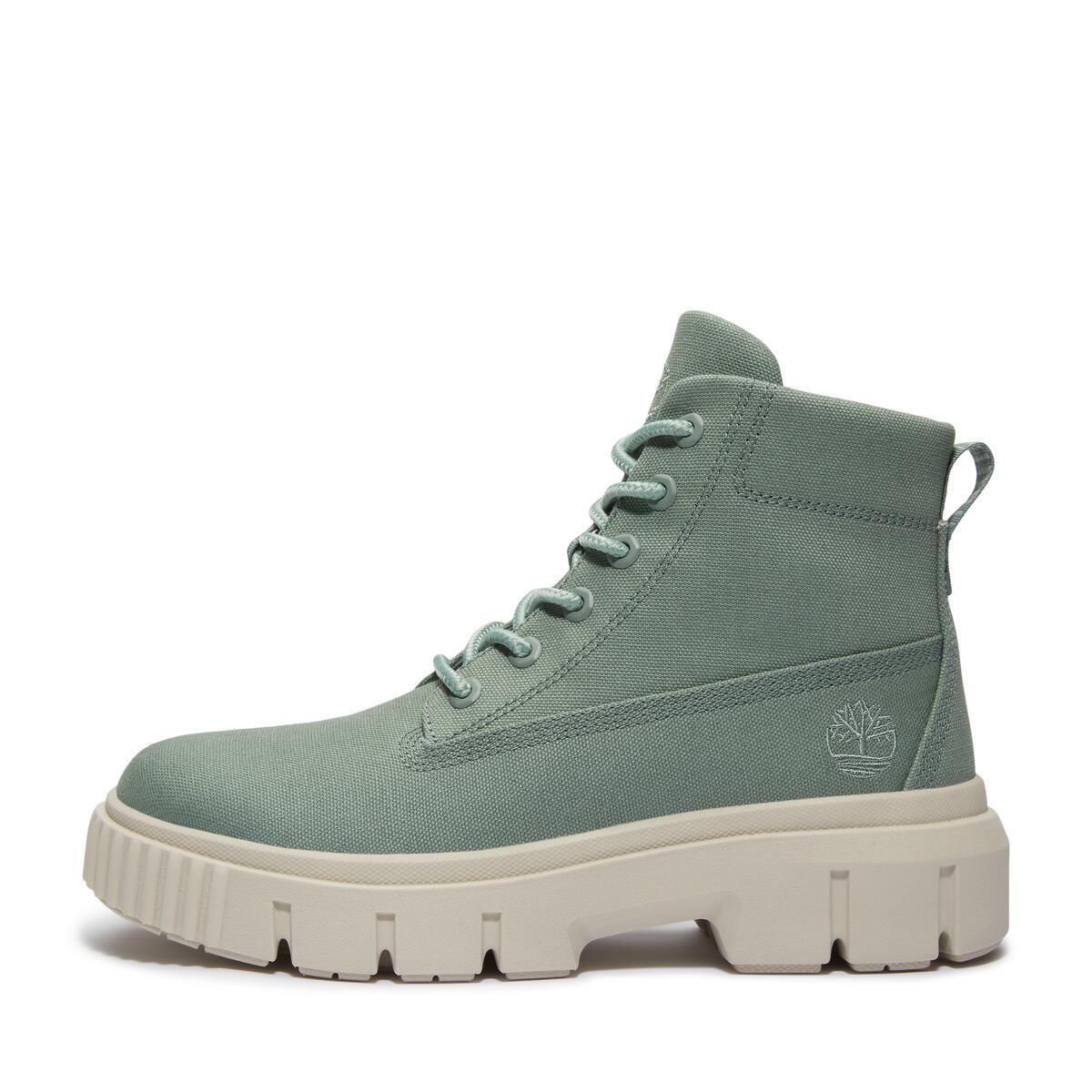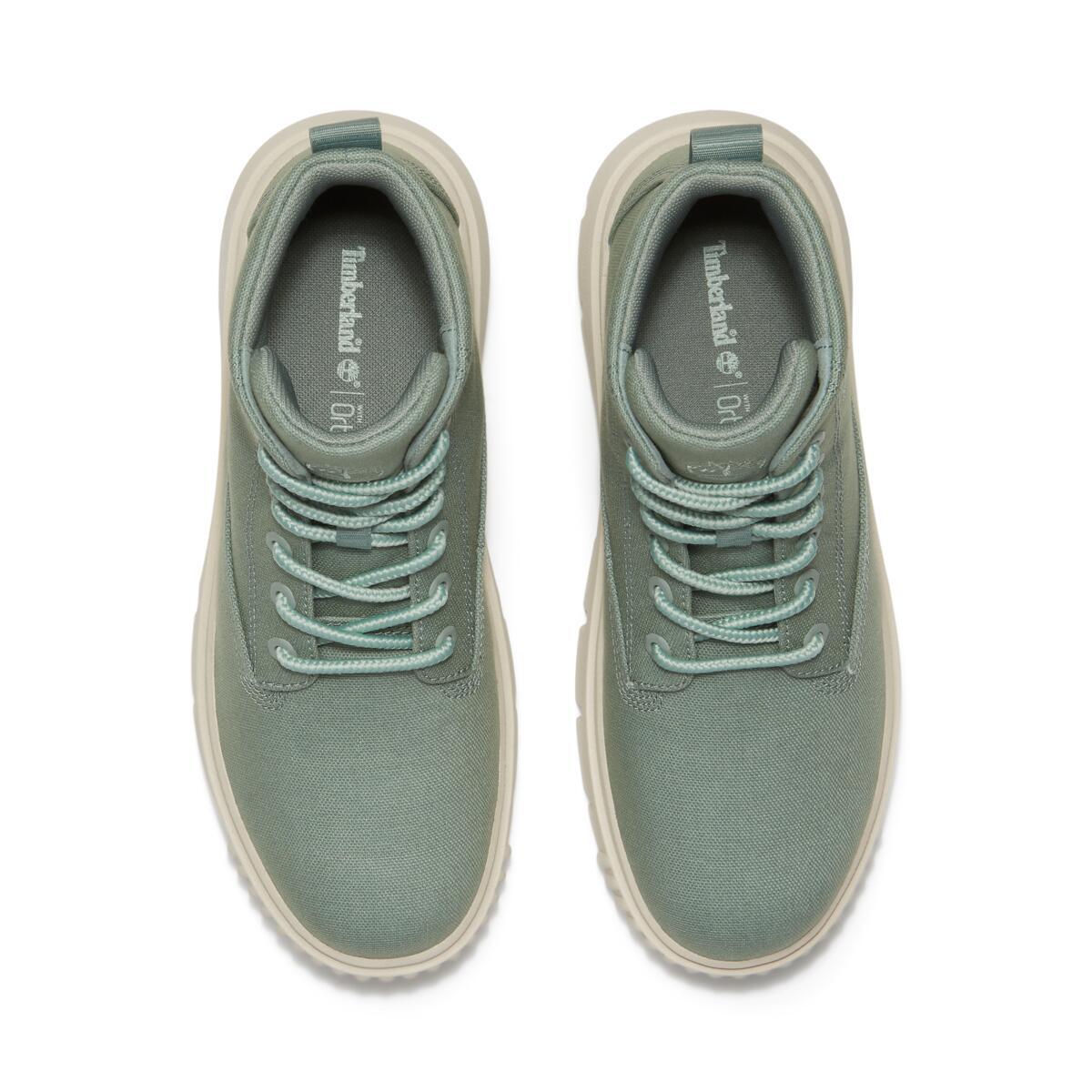Верх этих женских ботинок выполнен из канваса, сделанного из 100% переработанного пластика. Дизайн вдохновлен рабочей обувью и находится на грани утилитарности.