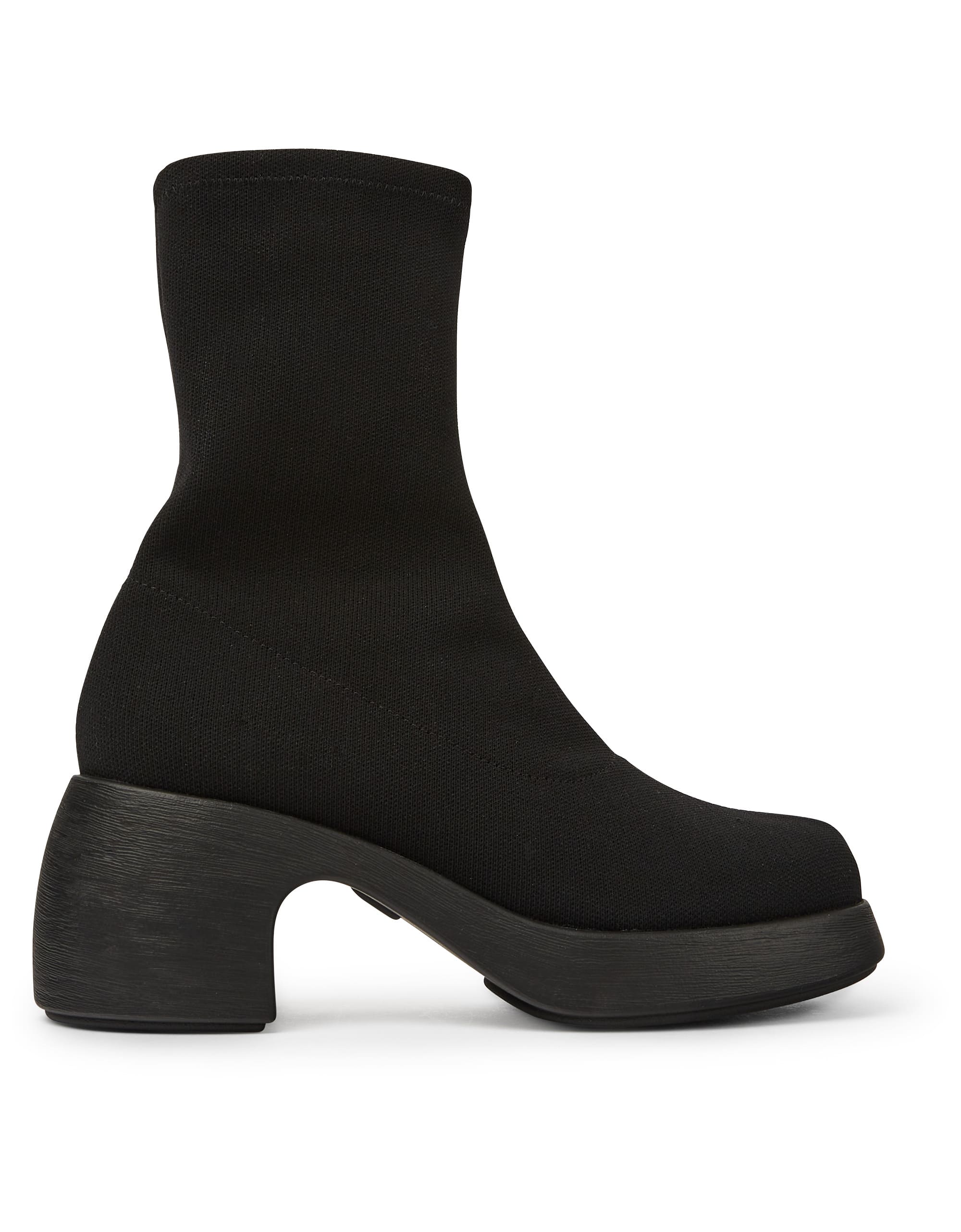 Черные женские ботинки из лиоцелловой ткани TENCEL™ с полиуретановой подошвой. Модель Thelma отличается изысканным сочетанием объема с массивным каблуком.