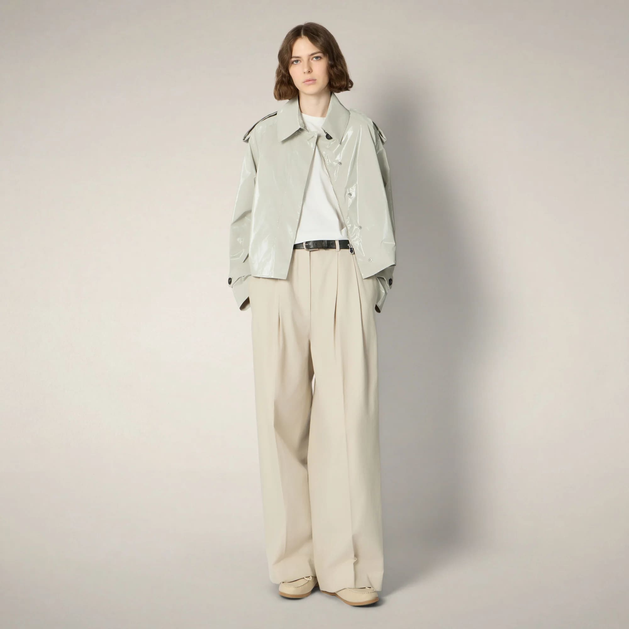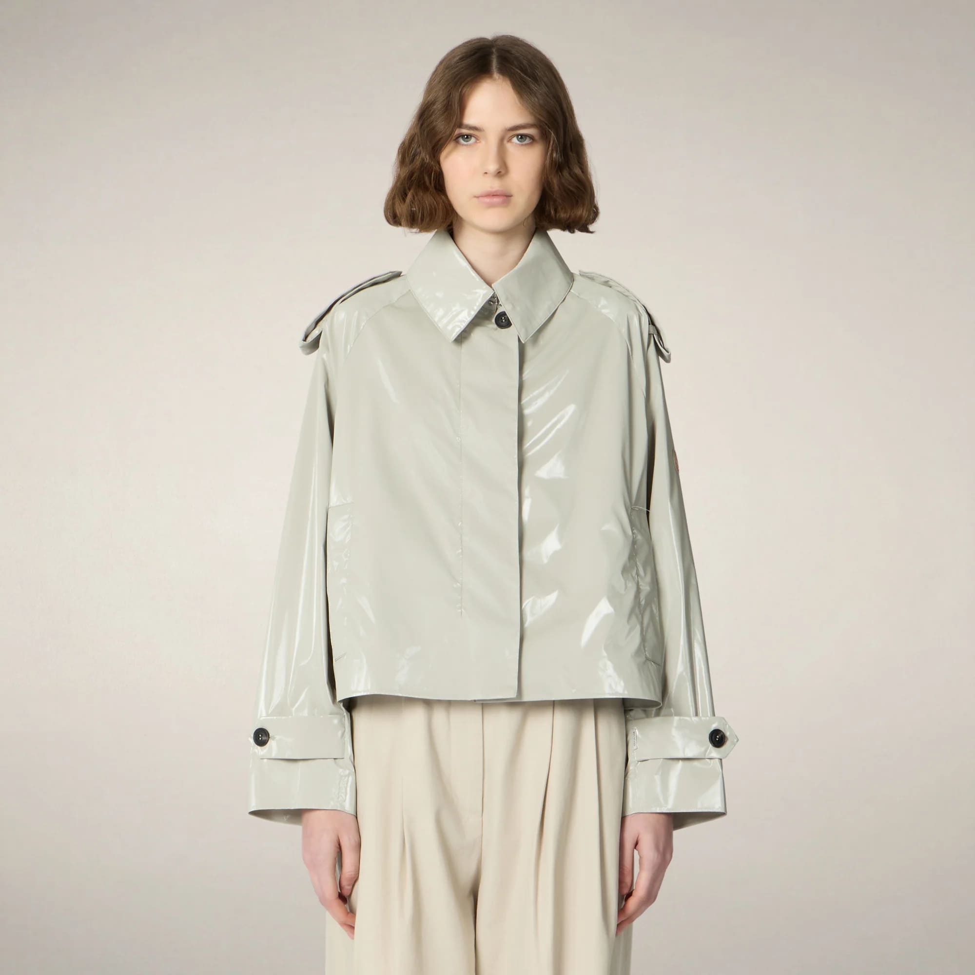 Женская куртка Gaia (Гайа)— это переосмысление плаща из полупрозрачной ткани с прорезными карманами в стиле тренча и остроконечным воротником. Рукава реглан, пуговицы из искусственного рога над потайной молнией, а также отвороты на плечах и манжетах отсылают к классике. Короткая куртка с расклешенным силуэтом и встречной складкой сзади легко дополнит ваш образ.