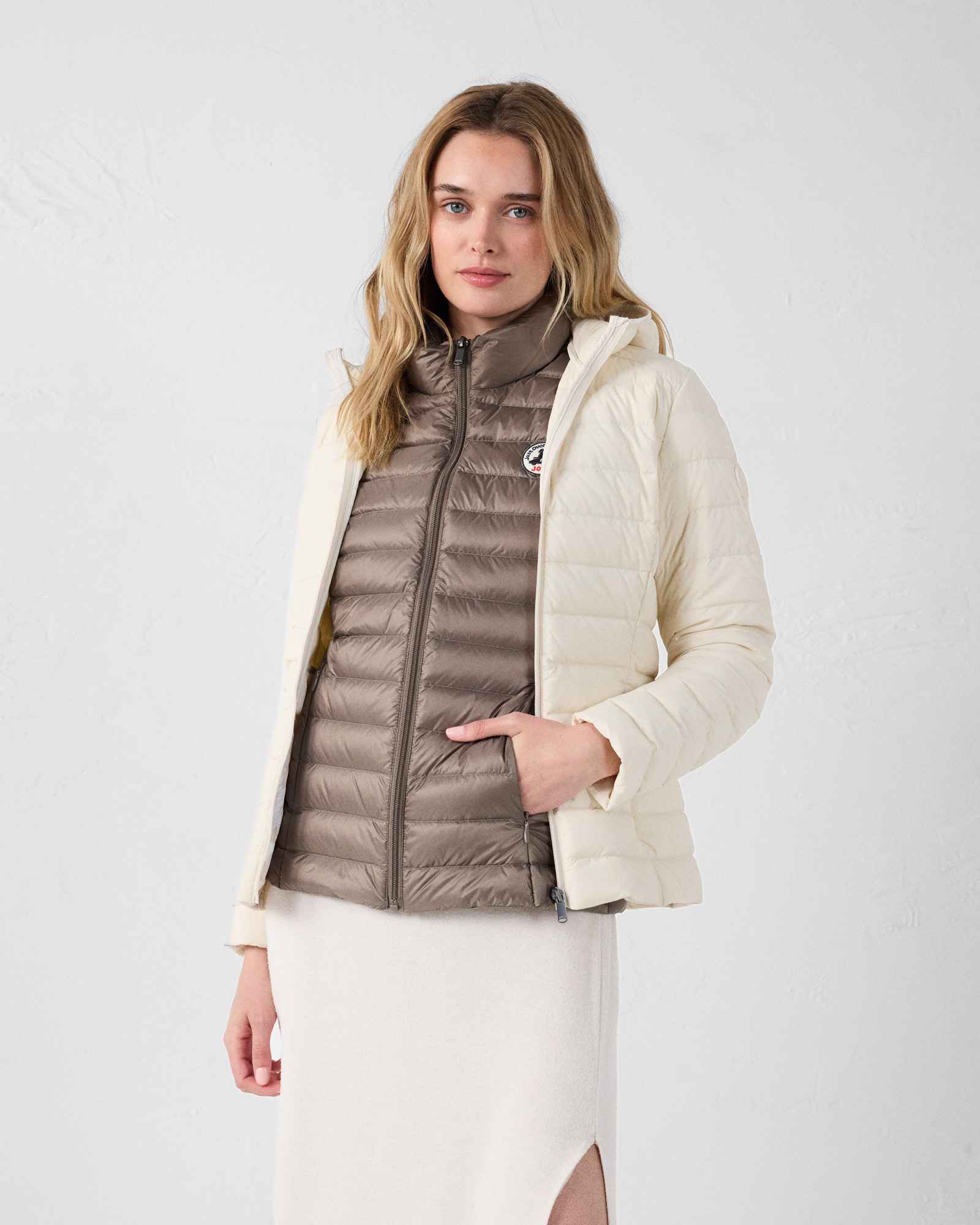 Эти пуховики — культовые модели JOTT. Они доступны круглый год, их даже можно носить с рубашкой, чтобы согреться при любых обстоятельствах. Эти пуховики на 10% состоят из пера и на 90% из натурального пуха, что обеспечивает легкость и теплоизоляцию при температуре до 5°C.