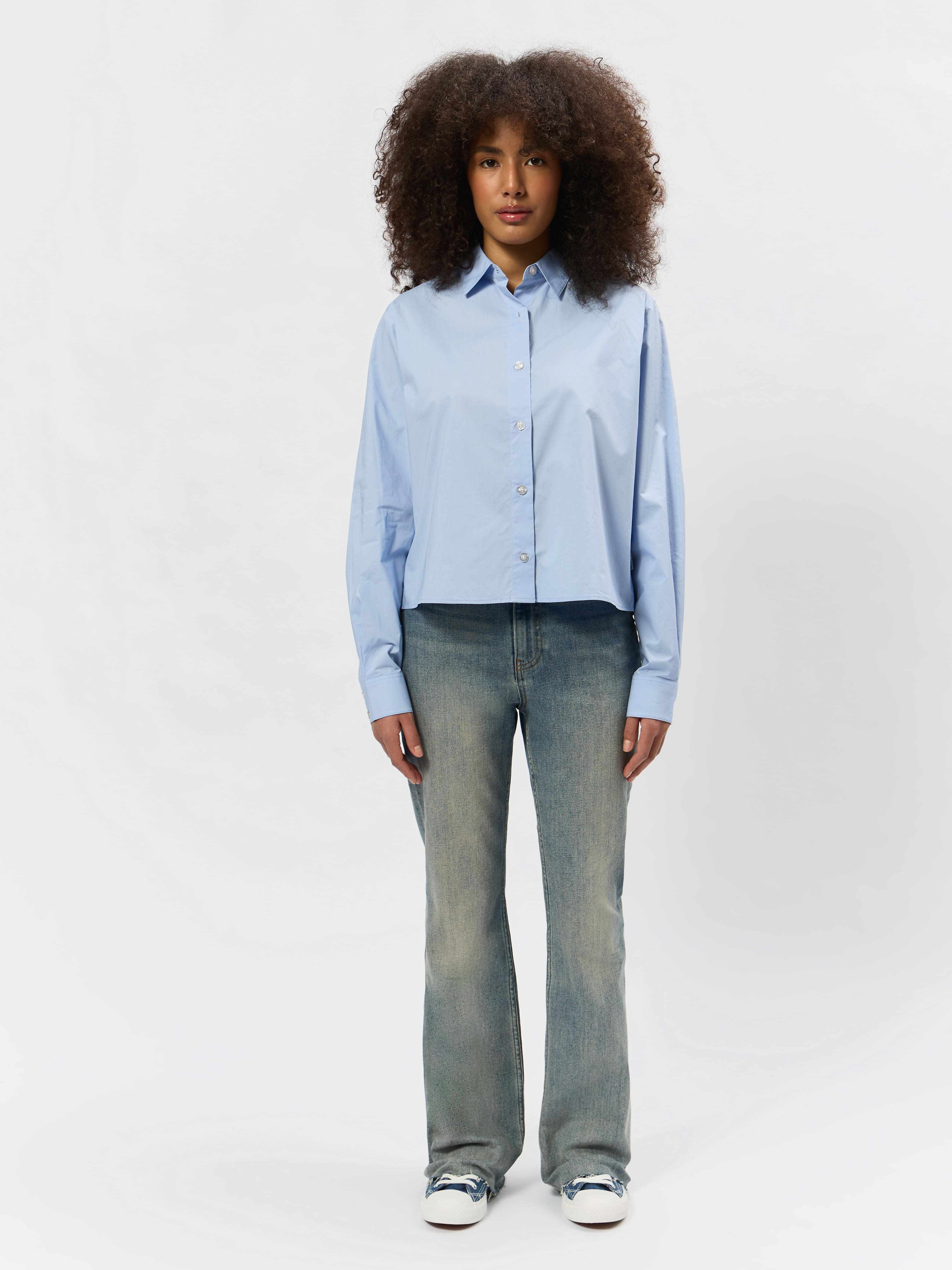 Женская рубашка прямого кроя укороченная