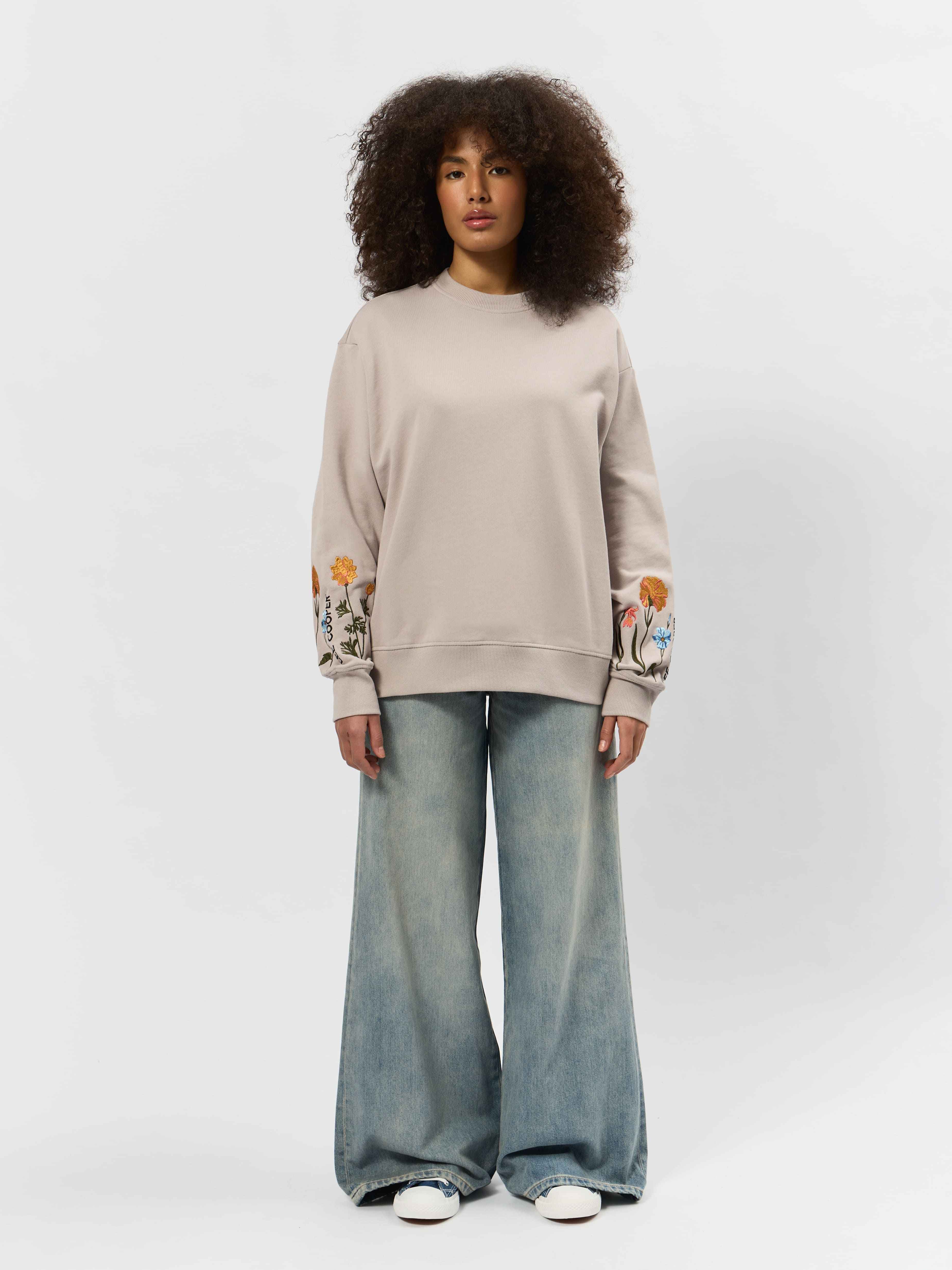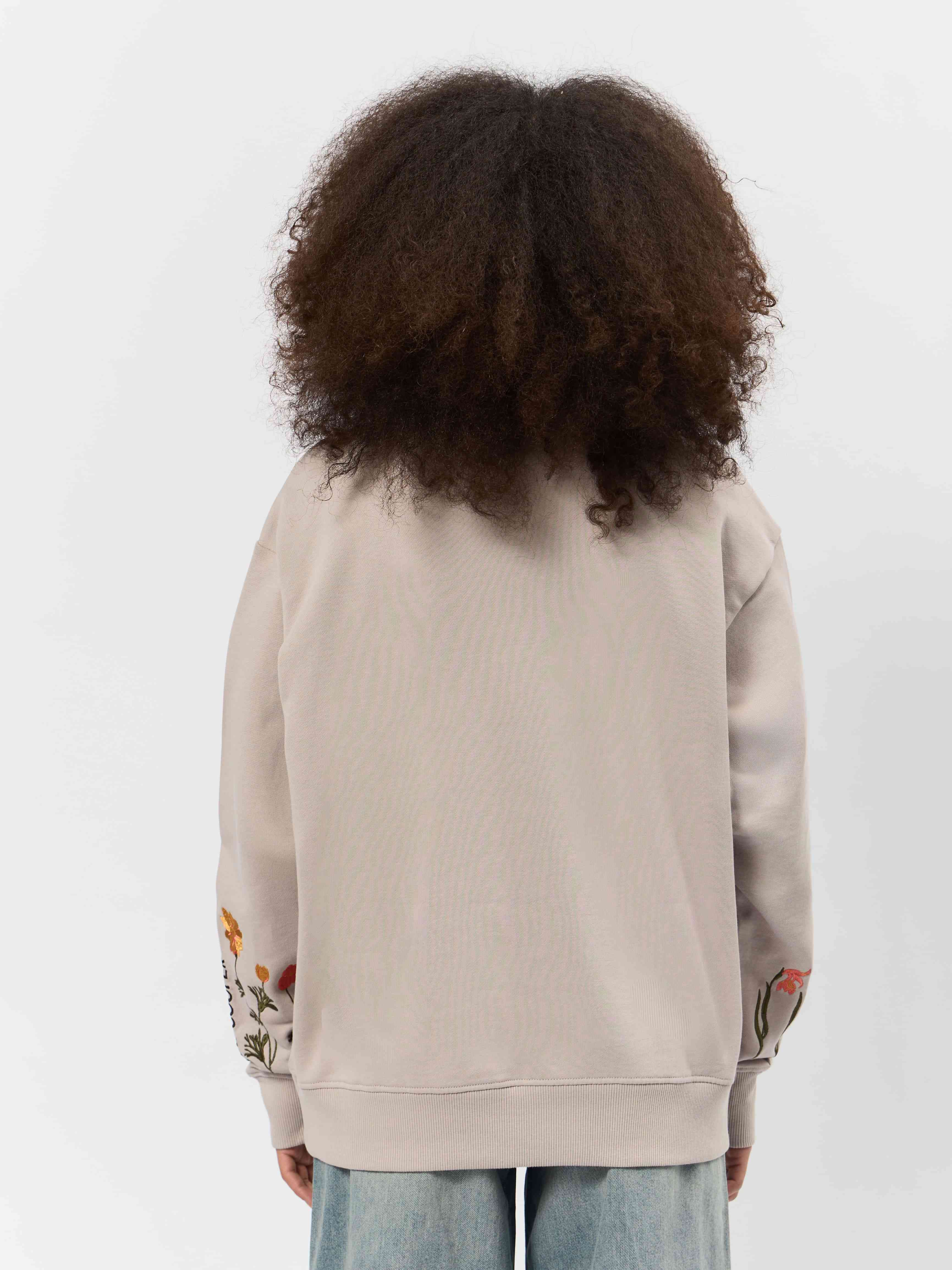 Свитшот имеет свободный крой и круглый вырез, что позволяет носить её с комфортом в любой ситуации. Вышивка на рукавах добавляет уникальности и шарма образу, делая эту толстовку неповторимой.