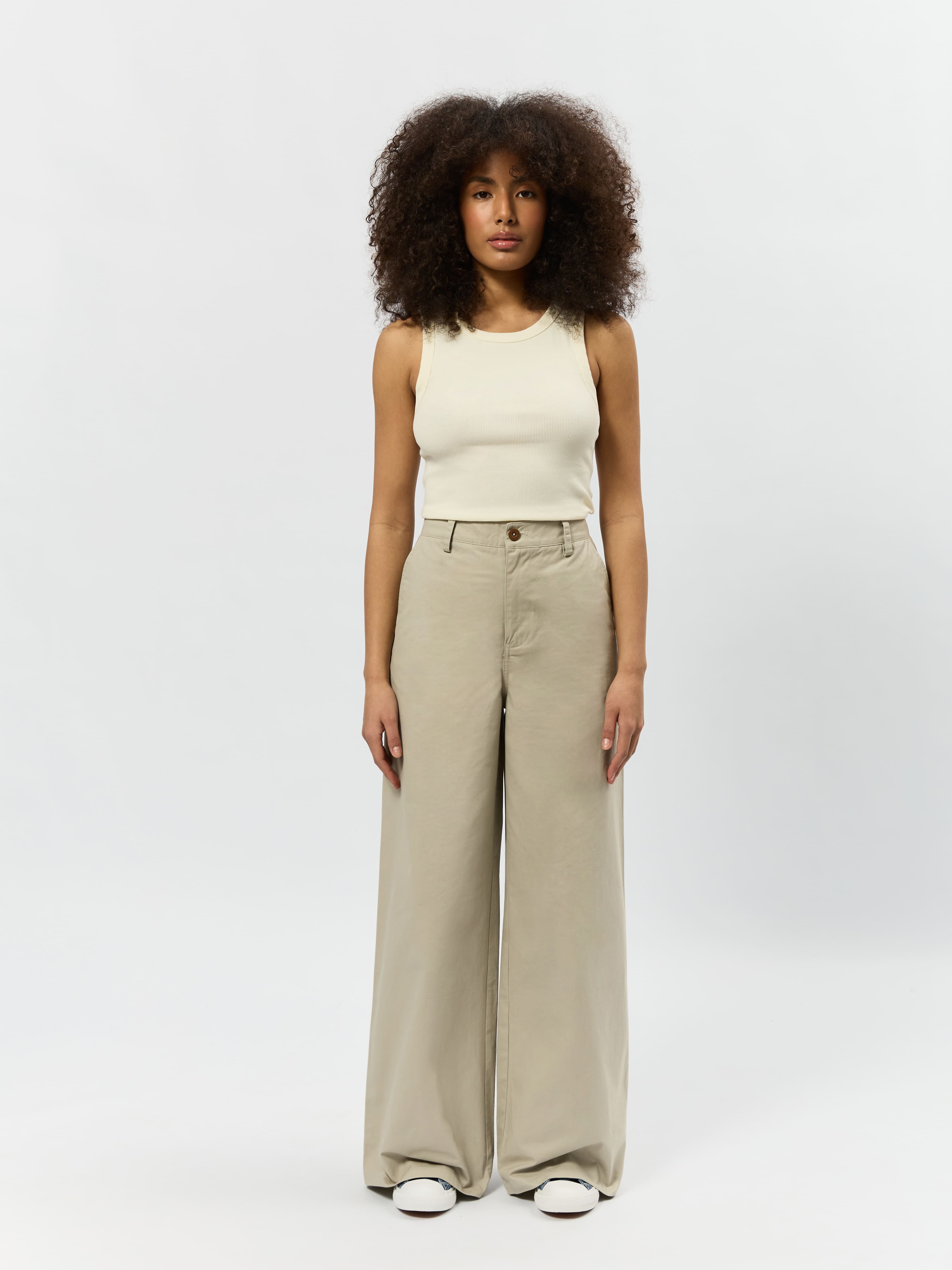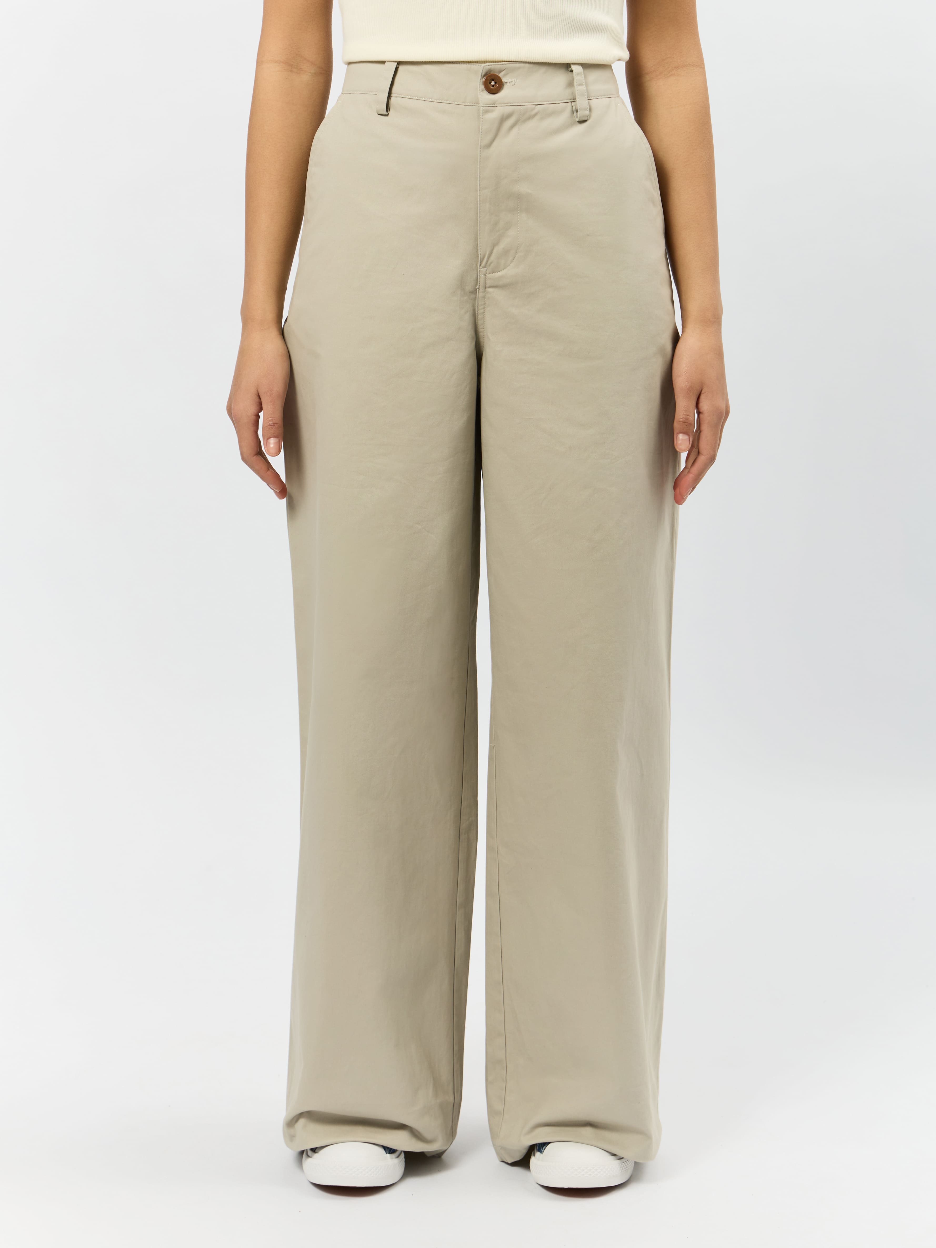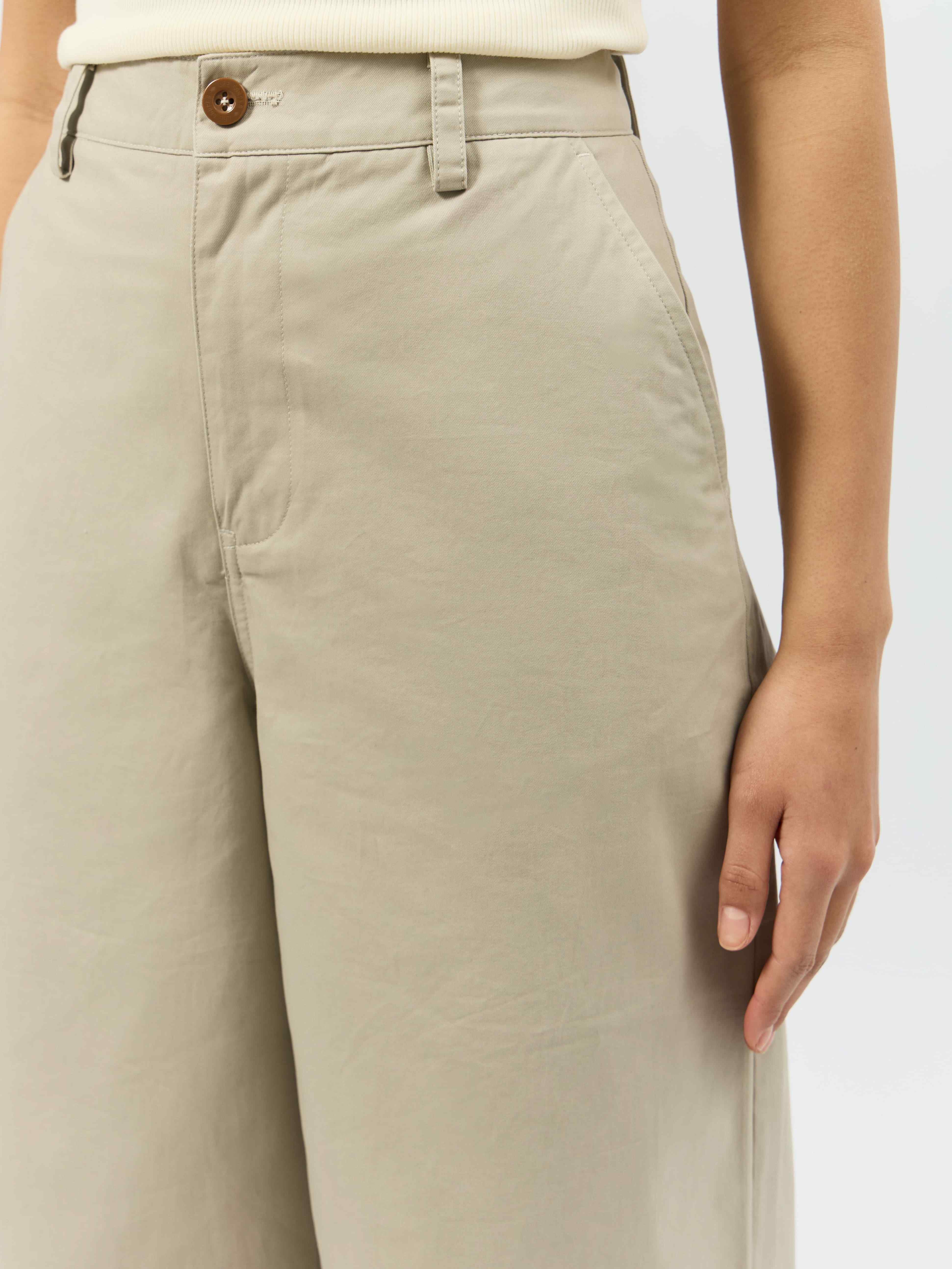 Брюки чинос имеют свободный крой в области бёдер и ног, что обеспечивает комфорт движений и сохраняет стильный вид.
