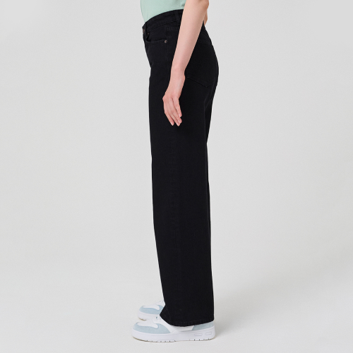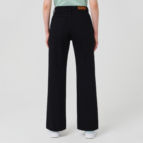 Широкие джинсы кроя со средней посадкой, актуальная с этом сезоне модель для модных и классических образов в спортивном или повседневном стиле. Модель c пятью карманами и легким расширением от бедра по всей длине штанин. Ширинка на молнии с металлической застежкой на пуговице. Плотный хлопок понравится ценителям традиционного денима станет одной из самых любимых вещей в вашем гардеробе