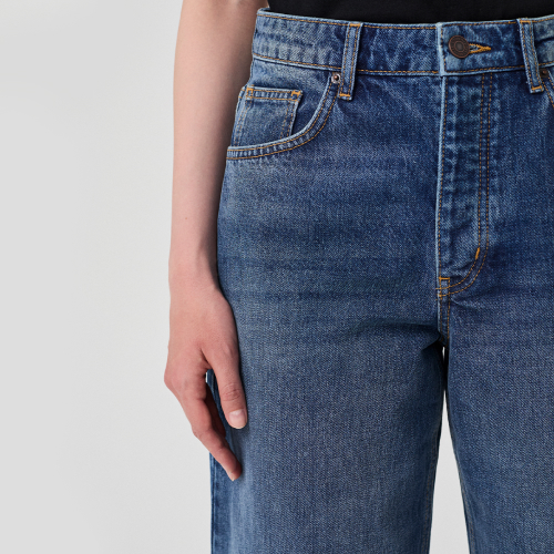 Джинсы актуального в этом сезоне прямого свободного от бедра кроя (Boyfriend). Ширинка с застежкой на болтах. Дизайн с 5 карманами придает этим брюкам классический вид, напоминая о корнях джинсовой культуры. Модель комфортная в носке, не сковывает движений, смотрится очень стильно в сочетании с любыми образами, плотный материал понравится ценителям традиционного денима и идеально подойдет для зимы и межсезонья.